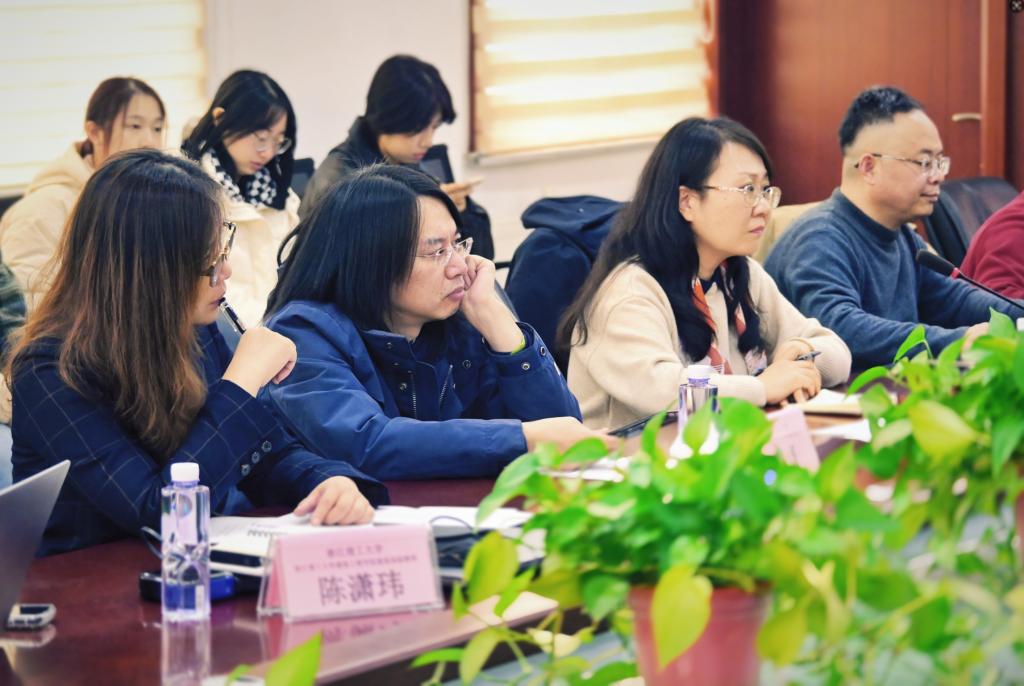 在最后的交流环节,多位老师和同学就推动基层党建“共同体”建设、校企联动、产教融合协同发展等议题进行了深入探讨。绍兴永通印花有限公司副总经理毛学泽指出,共同塑造既有专业知识又有创新能力的复合型人才,有助于为企业和社会的发展贡献力量。工口实验室