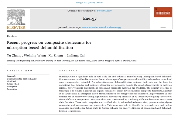 郑旭教师团队在Energy上发表了题为“Recent progress on composite desiccants for adsorption-based dehumidification”的综述论文,报道了近年来固体除湿领域复合干燥剂的研究进展。工口实验室