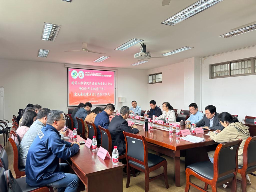 李娜、执行院长俞峰代表学院与内设机构负责人签订了2024年目标责任书和党风廉政建设责任书。