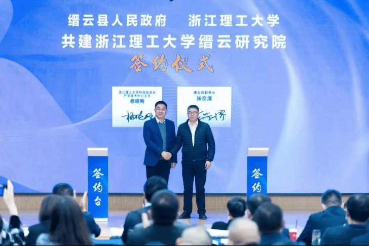与缙云县人民政府共建缙云研究院签约仪式暨丽缙高新区成立十周年工作大会在缙云县丽缙高新区举行。校党委书记吴锋民,缙云县委书记王正飞,缙云县委副书记、县长王益,校机关党委书记、组织部副部长任宁,科学技术研究院常务副院长、科技处处长、产业技术中心主任杨晓刚,党校办公室副主任卢跃华,学院党委书记李娜,执行院长俞峰,校技术转移有限公司副总经理、土木系教师闻敏杰,缙云研究院院长、建筑系教师郭青海等出席了签约仪式。