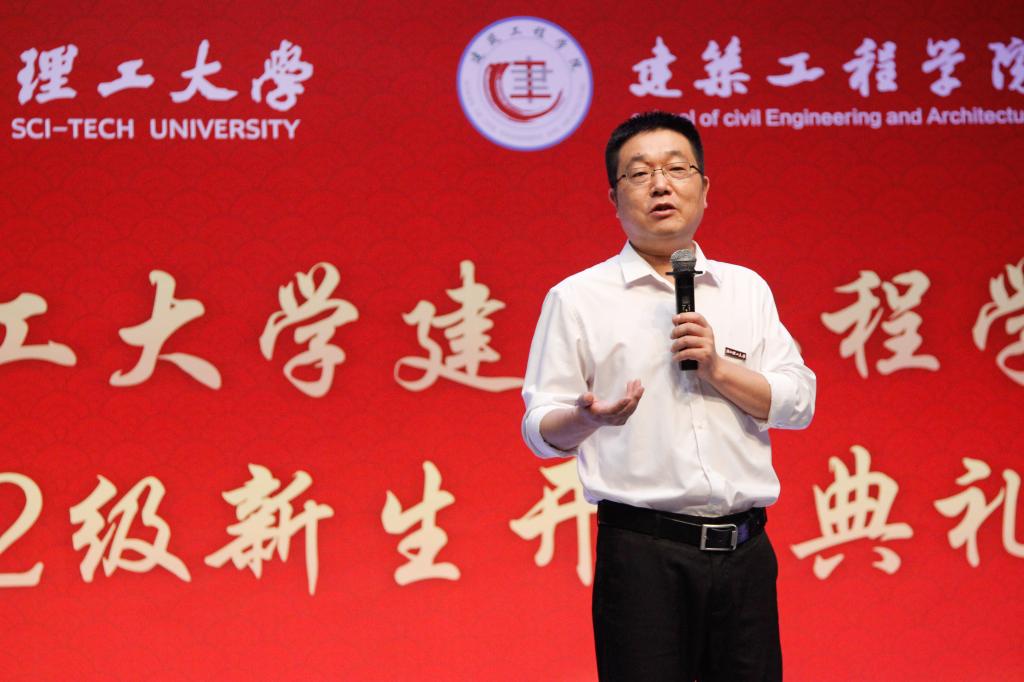 ,介绍了学院行业发展的前景和专业发展的方向,告诫同学们成才先成人,要脚踏实地,实事求是地走在求学之路上,以朝气蓬勃的状态迈入人生的新一阶段;时刻牢记底线思维,抓住时间,奋发努力,不给人生道路留下太大的遗憾;发挥主观能动性,把握自己的学习方向,不断进取拼搏。尾声将至,俞院长回答了新生们的一些困惑并衷心祝愿每一位新生在“浙理”遇见更好的自己,培养匠心,牢记院训,做一名新时代的大学学子。