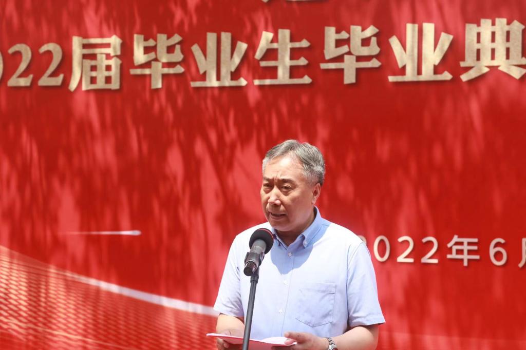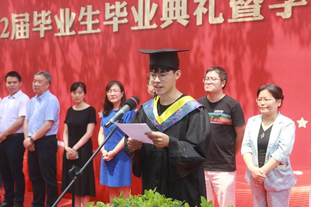 2022届学生毕业典礼暨学位授予仪式在7号楼西侧举行。校对外联络办公室(校友办)主任陈艳、学院党委书记李娜、院长杨杨、执行院长俞峰、副院长刘勇、杨博,各系教师代表、班主任代表等出席典礼。毕业典礼由学院党委副书记李孝明主持。