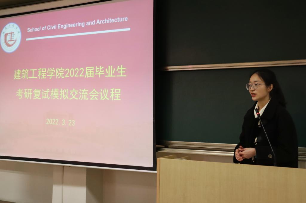 在2N219举办了2022届毕业生考研复试模拟交流会。担任复试模拟会评委老师的有土木工程系专任教师陈萍、建环系专任教师马景辉、工程管理系专任教师张春勤、建筑系专任教师周强、风景园林系专任教师胡立辉,工口实验室