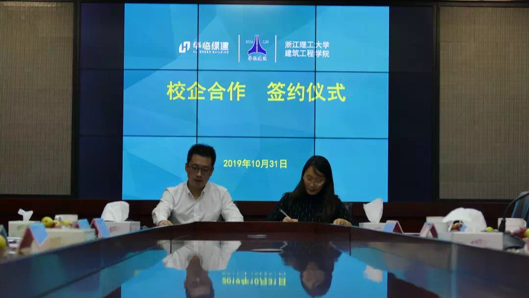 与华临建设集团、华临绿建科技股份有限公司校企合作签约暨领航工程启动仪式在浙江华临建设集团有限公司会议室隆重举行。工口实验室