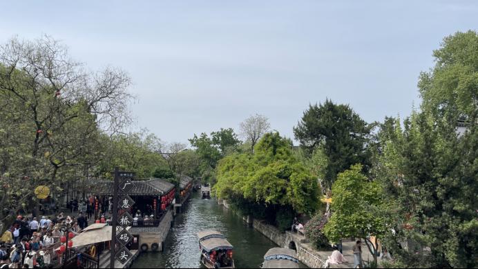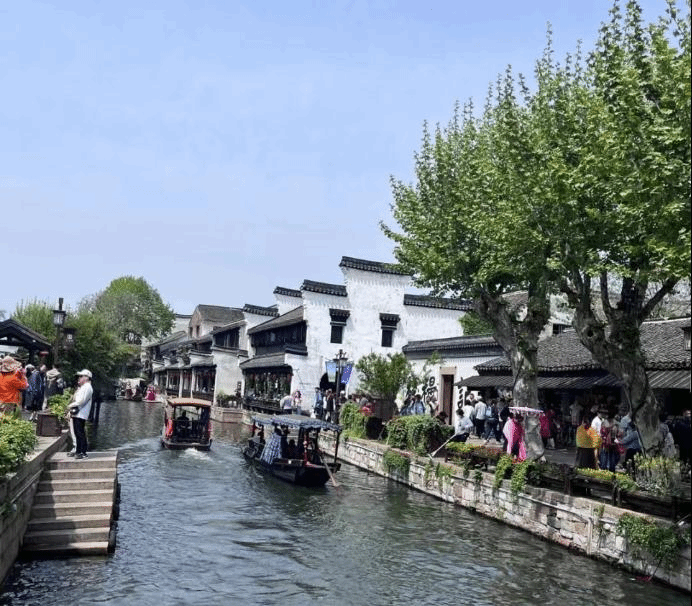 下午,一行来到“中国江南的封面”——南浔古镇。古镇有着悠久的历史和丰富的文化底蕴。河流纵横,密如蛛网,“三步一拱,五步一桥”。斑驳的马头墙,凹凸的石板路,几百年的岁月让小镇沉淀得端庄、古朴,极富雅韵。春水初生,草木吐绿,老师们沿着水畔的街巷从容而行,放慢脚步,感受这岁月静好。水上的乌篷船载着游客来来往往,仿佛看到当年的繁荣景象。大家纷纷感慨景色宜人、惬意舒畅。