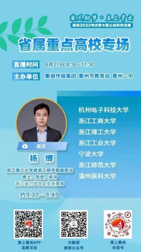 两场直播宣传分别是“乘风助梦·直上青云”衢报2022考试季公益系列直播与工口实验室