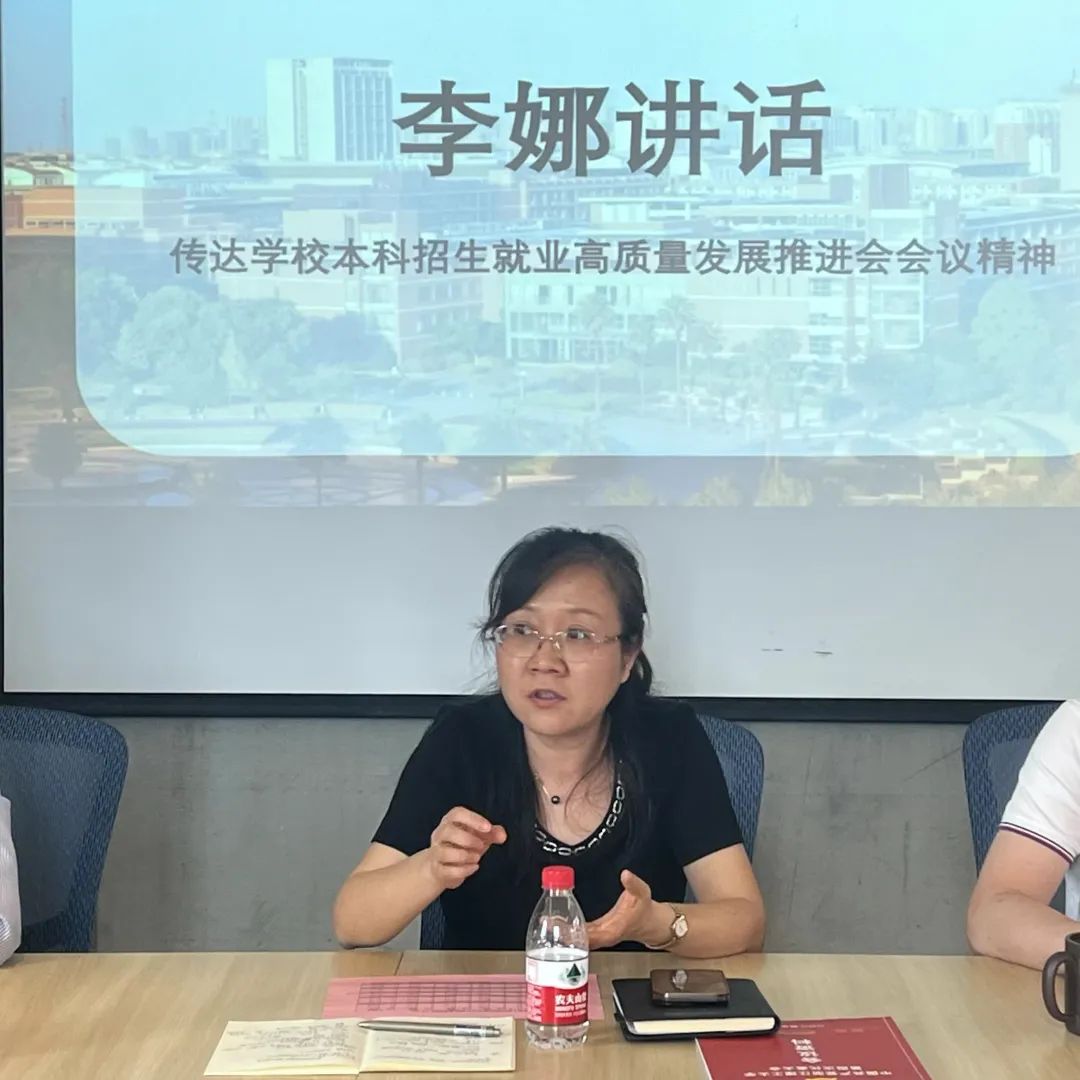 在7-524召开2024届本科毕业生就业推进会,学院党委书记李娜、执行院长俞峰、副院长杨博、党委副书记郑磊、学生工作办公室主任王欢欢以及各系系主任、毕业生辅导员参加会议。