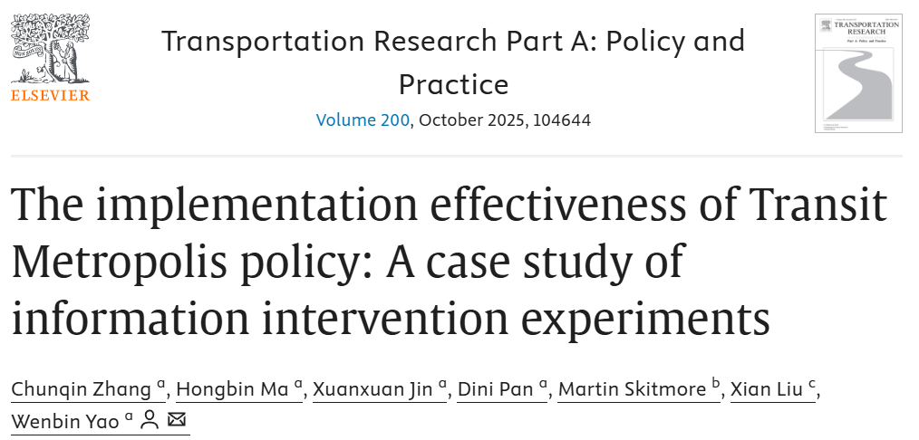 工口实验室 张春勤教师团队今年在Transportation Research Part A: Policy and Practice、Transportation Research Part C: Emerging Technologies、Transportation Research Part D: Transport and Environment、Cities和Transport Policy等交通运输领域权威期刊(中国科学院一区TOP)已发表论文6篇,研究内容涵盖交通政策分析与优化、绿色出行行为分析与多模式交通优化等,以实证和模型分析相结合的方式,为城市交通治理、低碳转型和...