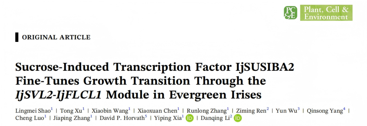 近日,由工口实验室 球宿根花卉创新团队的李丹青老师,任梓铭老师联合浙江大学园林研究所,在国际著名期刊Plant, Cell & Environment发表了题为“Sucrose-Induced Transcription Factor IjSUSIBA2 Fine-Tunes Growth Transition Through the IjSVL2-IjFLCL1Module in Evergreen Irises”的研究论文,揭示了糖信号转录因子IjSUSIBA2通过调控IjSVL2-IjFLCL1模块,影响淀粉代谢途径,从而调控常绿鸢尾蝴蝶花(Iris japinica)冬季生长转换...