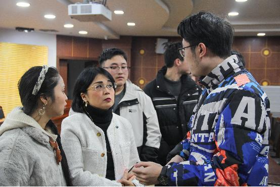,学院党委书记李娜、院长顾晓强、副院长徐辉在7-504会议室会见了来宾。